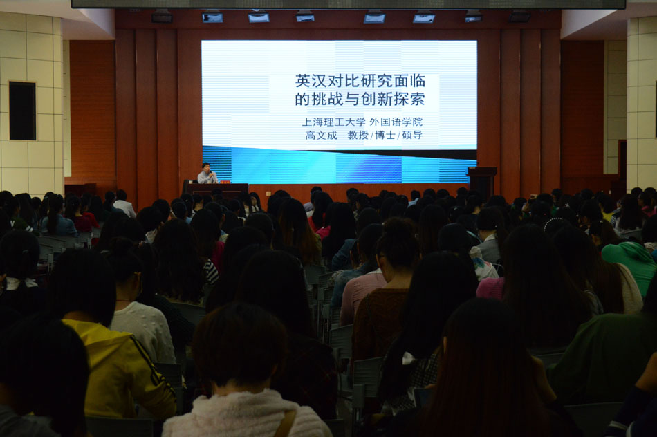 10月16日上午,新葡的京集团8814以学校四十年校庆为契机,邀请我校优秀校友上海理工大学新葡的京集团8814高文成教授为学子做了一场题为“英汉对比研究面临的挑战与创新探索”的学术报告,我院五百余名师生共同聆听了讲座。报告会由院长刘世理主持。