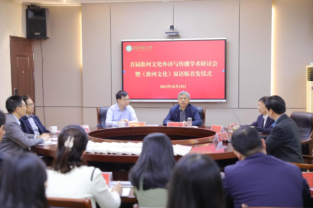 10月19日上午,首届淮河文化外译与传播学术研讨会暨《淮河文化》双语版首发仪式在我校举行。该书由省委外事办一级巡视员杨玮斌教授和新葡的京集团8814李俊校长共同发布。发布会在行政楼436会议室举行,出席本次会议的有新葡的京集团8814原社会科学处处长金荣权教授,文学院院长姚圣良教授,新葡的京集团8814党委书记陈铭、院长蔡满园、副院长余永锋、章彩云,国际交流合作处副处长王秋霞,社会科学处、学科建设办公室、炎黄学研究中心、河南省淮河文明研究中心相关负责同志,以及《淮河文化》中英文专家组成员和部分师生代表。